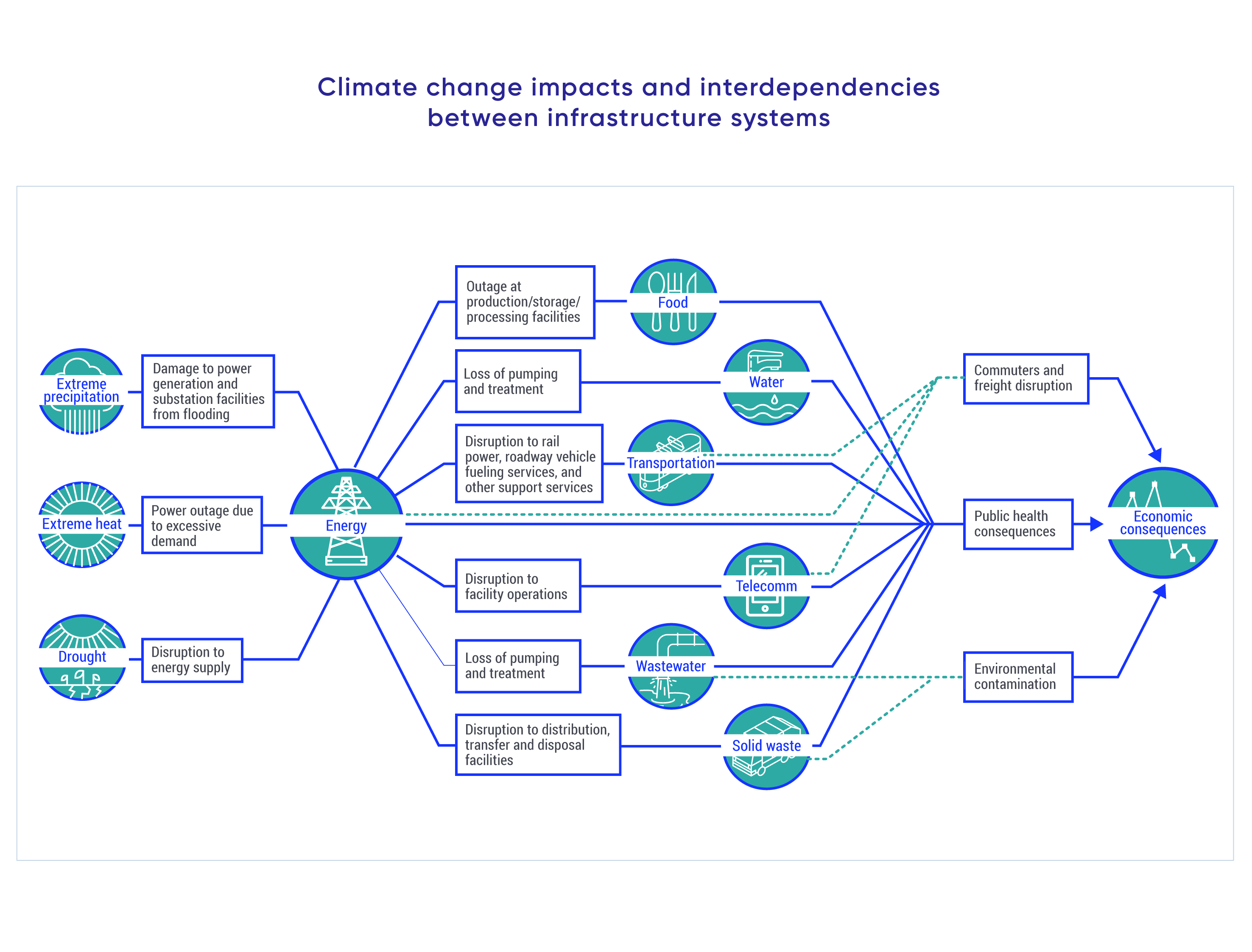 • Potential increase in disruption to and failure of electrical systems from heat and storms
