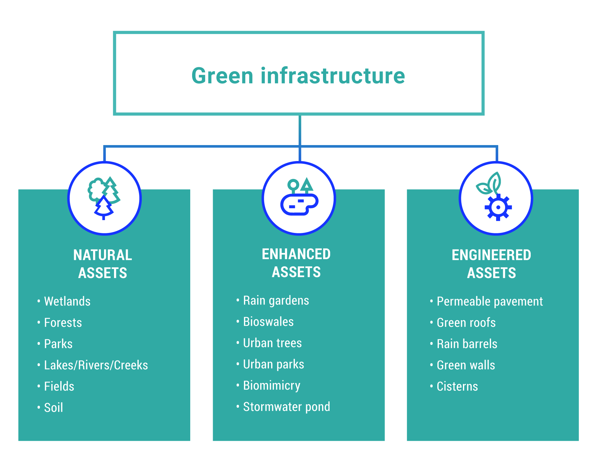 Green infrastructure, such as parks, wetlands and green roofs, in Canada’s cities and towns increase the quality of life for residents and improve climate resilience. Recognizing the value of the benefits associated with green infrastructure and nature-based adaptation solutions will be useful in advancing their use to reduce impacts from climate change and other stressors.
