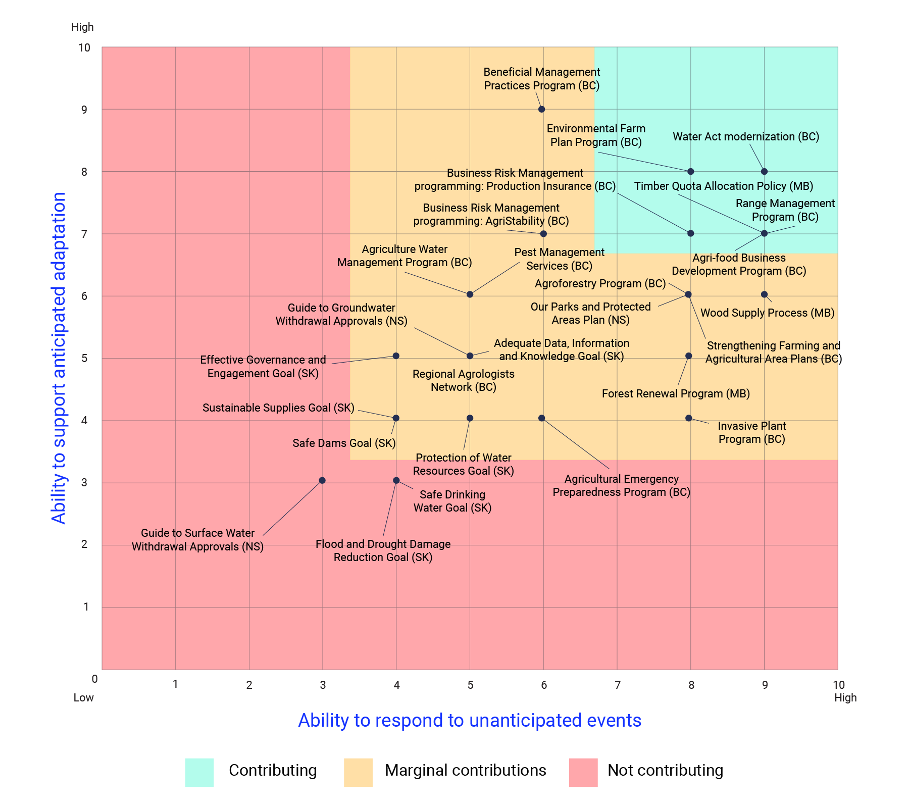 While institutional barriers remain, innovations around water management and climate change adaptation have occurred across Canada. Innovation in the water sector is driven by leaders who propose new ideas and build coalitions around them, and by the creation of safe spaces for policy experimentation. Exploratory modelling and scenario exercises can build empathy and consensus between stakeholders and lead to the development of low- or no-regret adaptation strategies that perform reasonably well against a wide range of plausible futures. Adaptive management provides a systematic, iterative process of monitoring and adjusting actions to new information and changing circumstances.