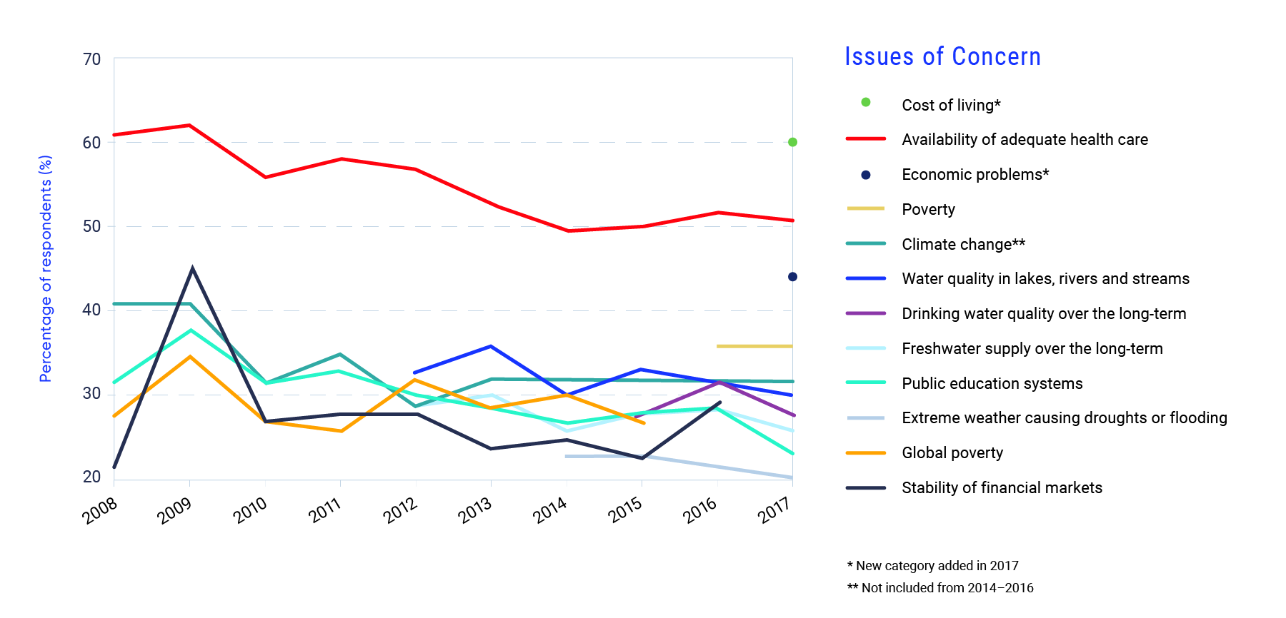 Successful adaptation requires public buy-in to the science of climate change and the need to implement adaptation policies. A majority of Canadians support policies to address water-related problems, but managing water resources ranks low on their list of salient problems after the economy, health care, and cost of living. Extreme events, including floods, droughts and episodes of poor water quality, can often bring the need for better water management to the forefront.