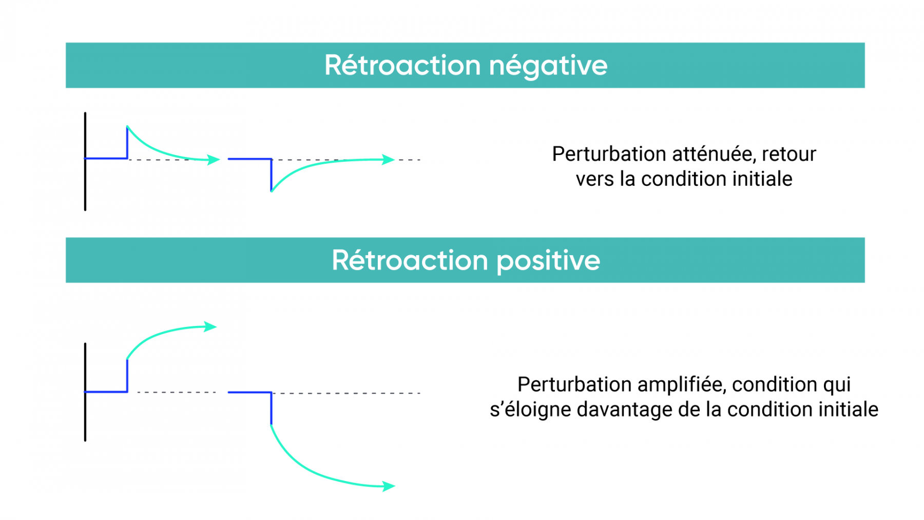 Illustration des boucles de rétroaction positives et négatives liées aux interactions climat-écosystème.