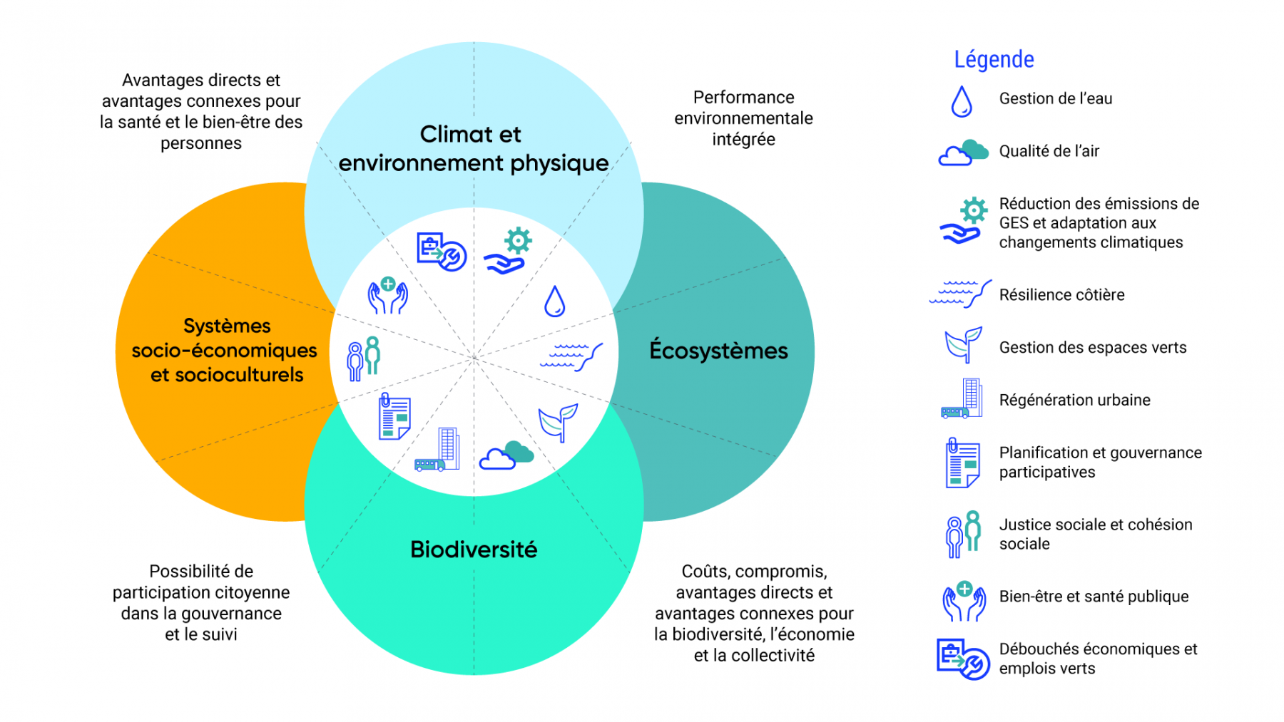 Cadre utilisé par Raymond et coll. (2017) pour l’évaluation des avantages connexes des approches fondées sur la nature.