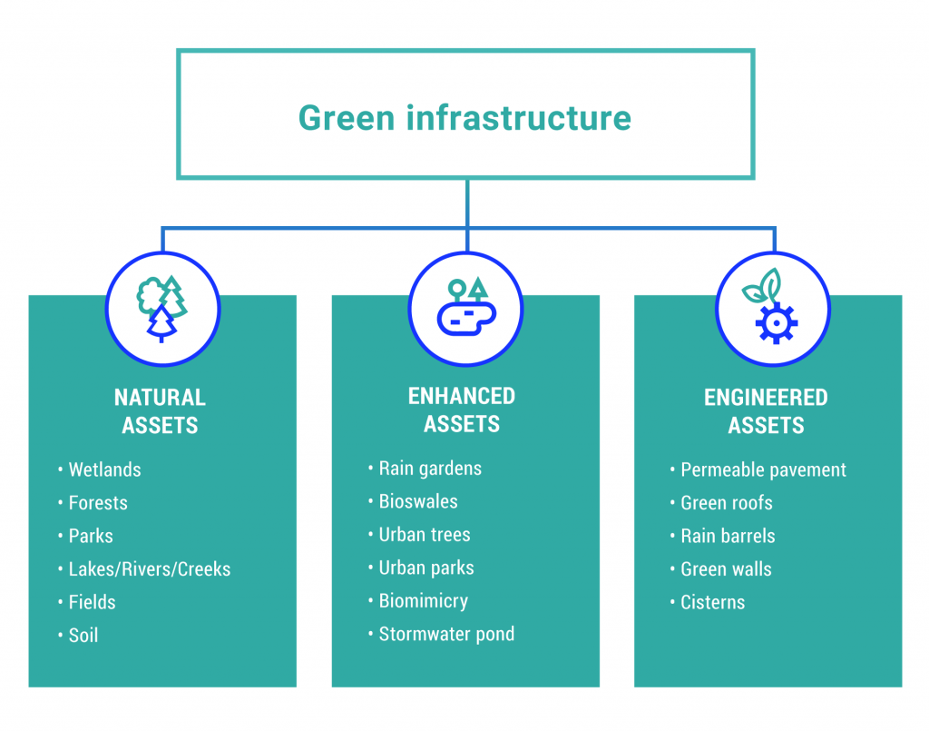 Definition of green infrastructure (Municipal Natural Assets Initiative, 2017).