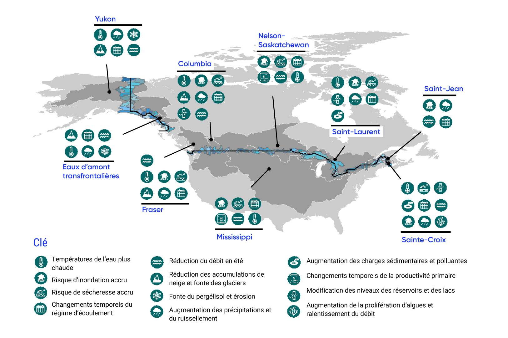 Bruce, J.P., Martin, H., Colucci, P., McBean, G., McDougall, J., Shrubsole, D., Whalley, J., Halliday, R., Alden, M., Mortsch, L. et Mills, B. (2003). « Climate Change Impacts on Boundary and Transboundary Water Management ». Resources naturelles Canada. Consulté en février 2021 sur le site <https://data.globalchange.gov/report/natresourcescanada-climchimpacts-2003>