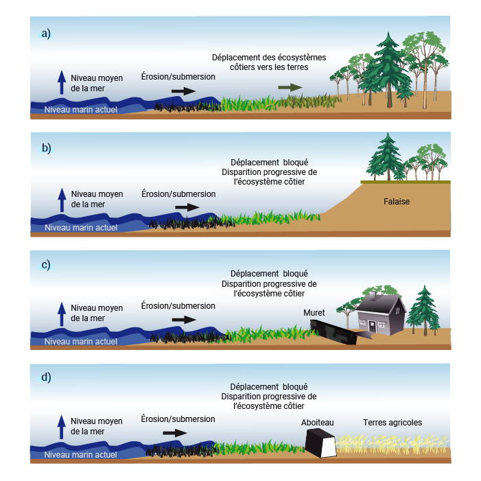 Les zones côtières de l’est du Québec sont aux prises avec des enjeux importants d’érosion et de submersion côtières, exacerbés par la réduction du couvert de glace qui amplifie l’impact des tempêtes. Devant la gravité des impacts cumulés sur les environnements côtiers, les populations habitant le long du littoral québécois aménagent leur territoire autrement pour s’adapter aux changements climatiques.