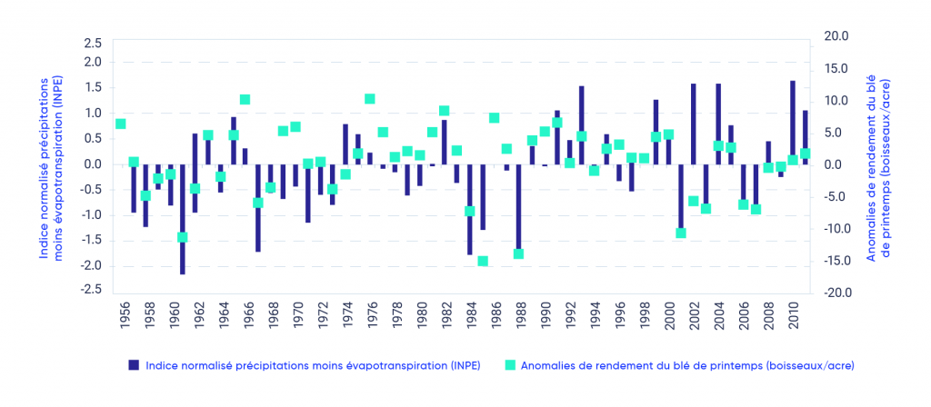 Meng, T., Carew, R., Florkowski, W et Klepacka, A. (2017). « Analyzing temperature and precipitation influences on yield distributions of canola and spring wheat in Saskatchewan ». Journal of Applied Meteorology and Climatology 56, 897‒913. Consulté en juin 2020 sur le site https://doi.org/10.1175/JAMC-D-16-0258.1