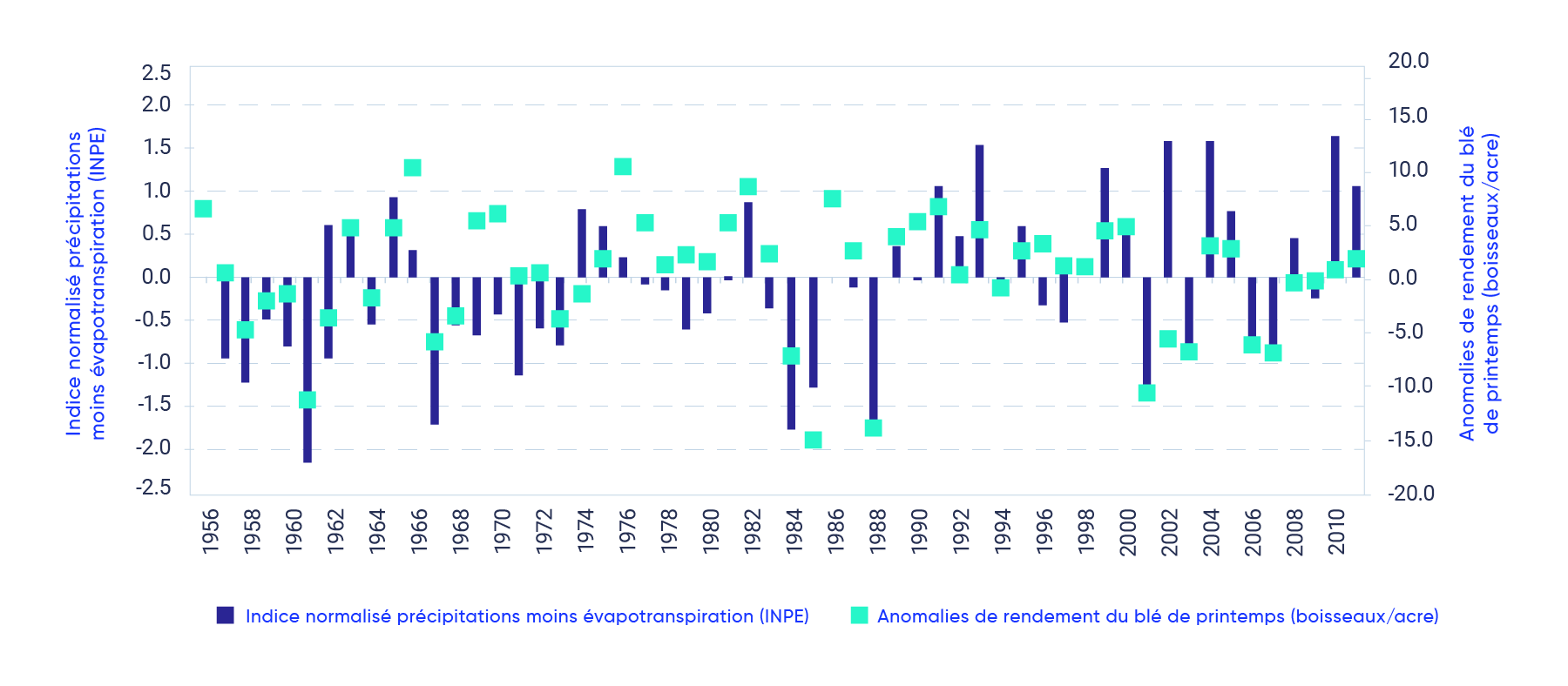 Qian, B., De Jong, R., Huffman, T., Wang, H. et Yang, J. (2015). « Projecting yield changes of spring wheat under future climate scenarios on the Canadian Prairies ». Theoretical and Applied Climatology 123, 651‒669. Consulté en juin 2020 sur le site https://doi.org/10.1007/s00704-015-1378-1