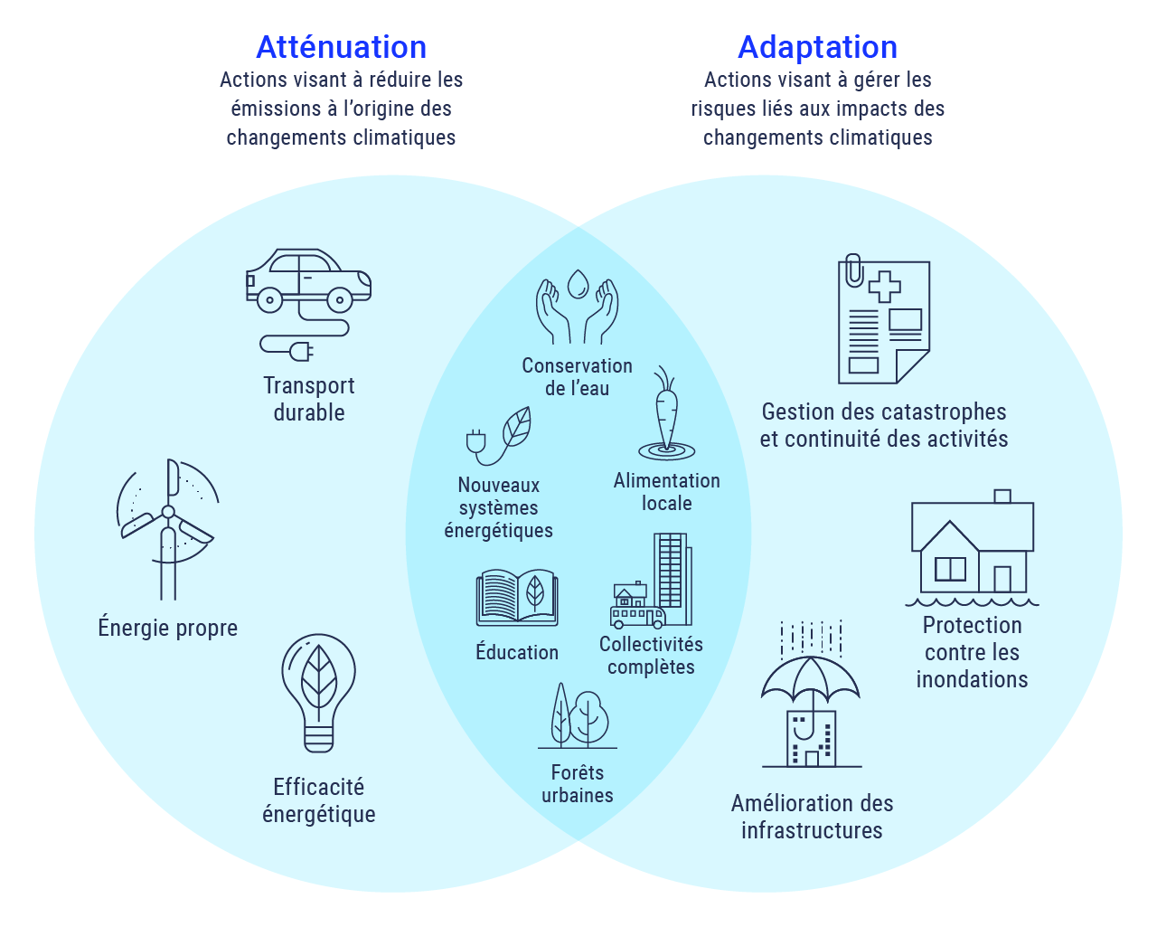 Bien que la réponse à la pandémie ait monopolisé l’attention du monde entier, les changements climatiques continuent toutefois de faire partie intégrante des dialogues mondiaux, nationaux et infranationaux. En effet, alors que nous essayons toujours de comprendre les chocs pandémiques qui déferlent sur nos systèmes sociaux, économiques et environnementaux, des perspectives encourageantes se dessinent en ce qui concerne la lutte contre les changements climatiques. La réponse à la COVID-19 a montré qu’une fois que les individus, les entreprises et les gouvernements comprennent les risques, ils sont prêts à apporter des changements majeurs pour protéger la vie des gens et leurs moyens de subsistance, en dépit de l’incertitude. Elle a également mis à jour les avantages qui peuvent être obtenus par la coopération, les progrès qui peuvent être réalisés grâce à des efforts concertés et le rôle essentiel que le secteur privé et la société civile jouent dans les mesures à prendre face aux défis mondiaux.