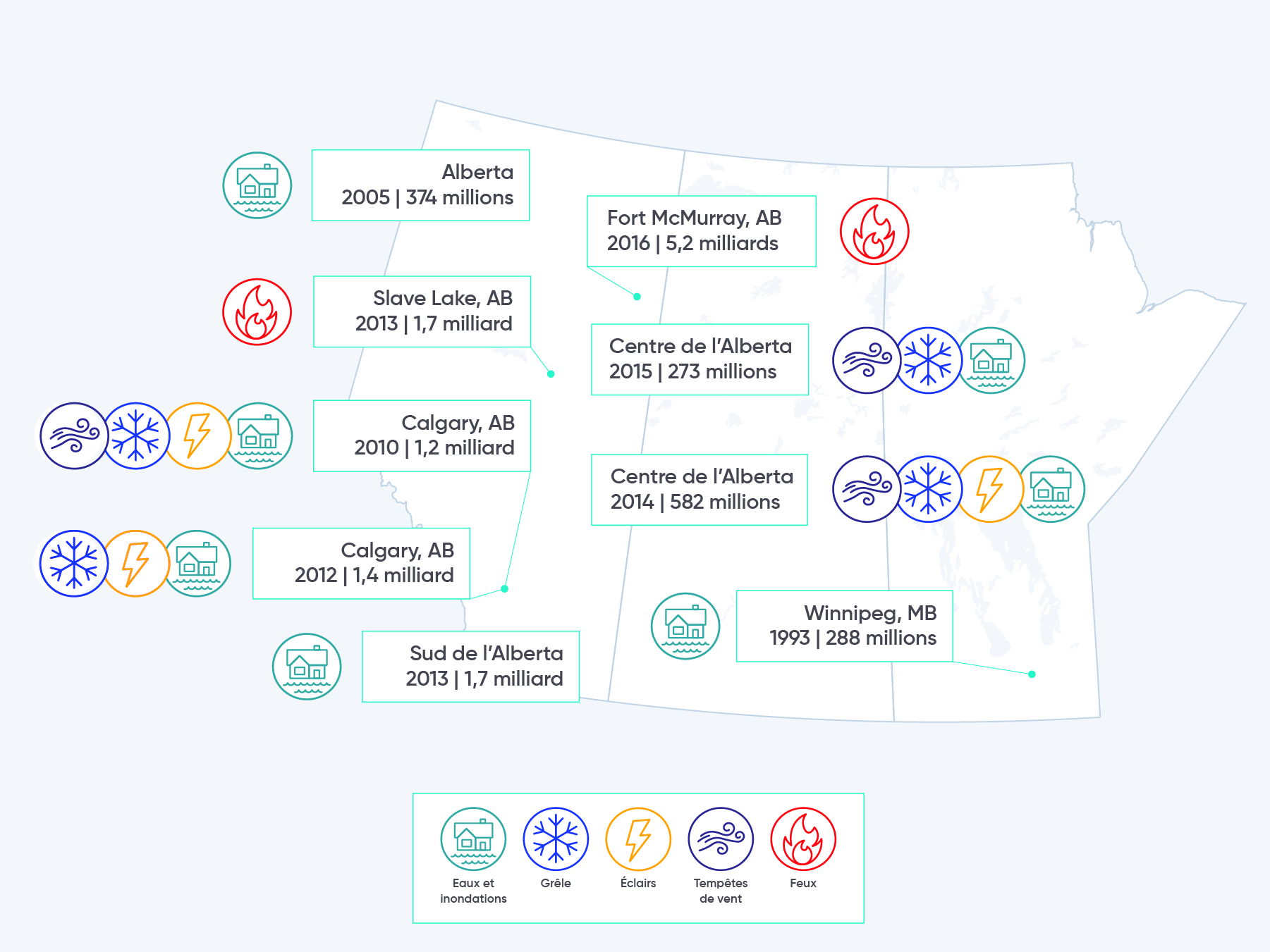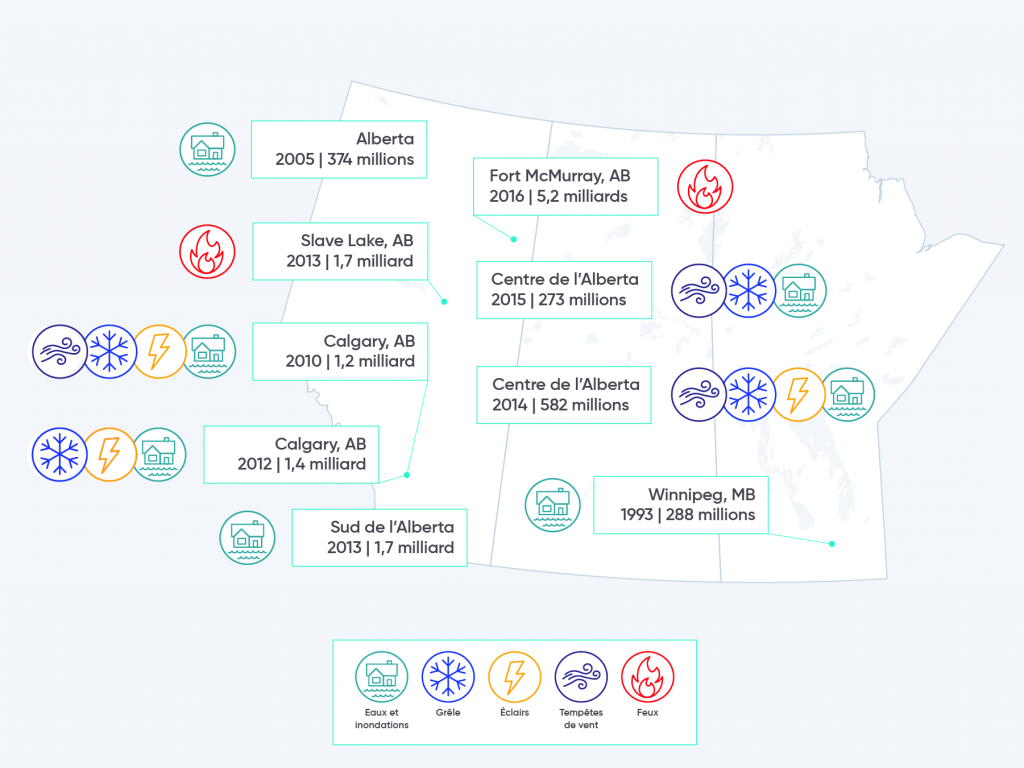 L’aggravation des phénomènes météorologiques extrêmes en raison des changements climatiques constituera probablement un défi majeur pour les provinces des Prairies. Les impacts des inondations, des sécheresses et des feux de forêt au cours des dernières années sont sans précédent et les modèles climatiques prévoient un risque accru de ces phénomènes dans le futur. Les administrations municipales et provinciales y font face en proposant des politiques, des structures et des pratiques visant à réduire les impacts des phénomènes météorologiques extrêmes.