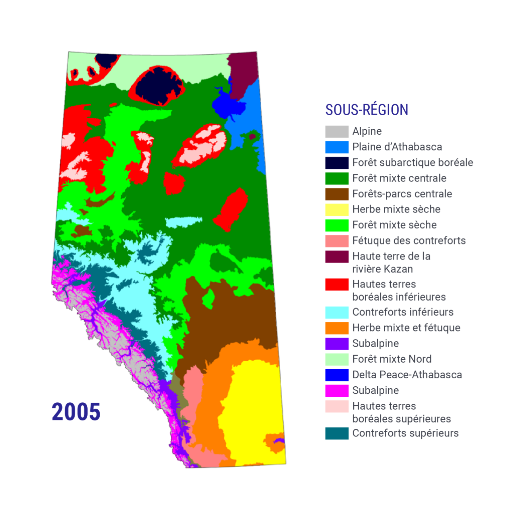 Schneider, R. (2013). « Alberta’s natural subregions under a changing climate: past, present, and future ». Alberta Biodiversity Monitoring Institute, Edmonton, Alberta. Consulté en juin 2020 sur le site https://doi.org/10.7939/R3WS8HM1N