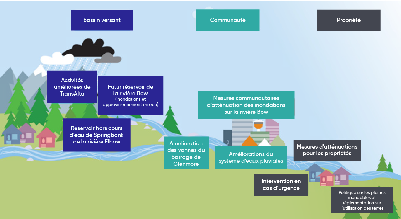 La politique et la planification régionales de l’aménagement des terres, ainsi que la préparation aux situations d’urgence, sont essentielles pour réduire les effets des inondations et de la sécheresse dans les provinces des Prairies. Une collaboration est nécessaire entre tous les ordres de gouvernement, et avec les parties prenantes telles que les groupes de gestion des bassins, les municipalités rurales et les districts de conservation, afin de mettre en œuvre ces mesures d’adaptation et de promouvoir des pratiques qui préviennent ou réduisent au minimum les effets négatifs des excès et des pénuries d’eau.